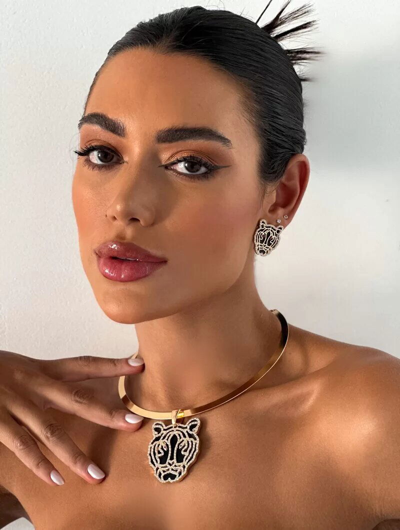 3. Conjunto Choker e Brinco Folheado a Ouro 18k e Prata Pantera Cravejada