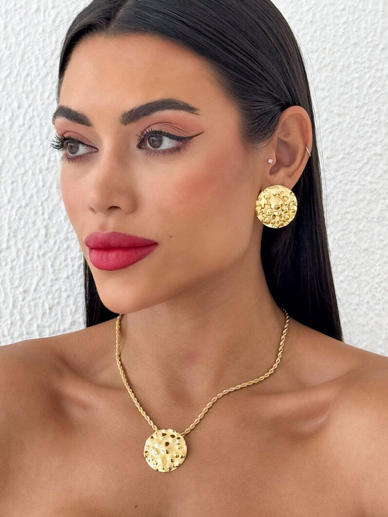 Conjunto Colar e Brinco Folheado a Ouro 18k Botton Martelado