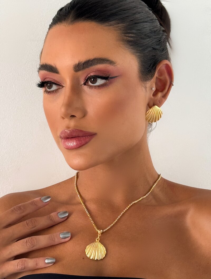 3. Conjunto Colar e Brinco Folheado a Ouro 18k Concha