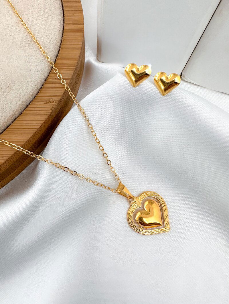 3. Conjunto Colar e Brinco Folheado a Ouro 18k Coração