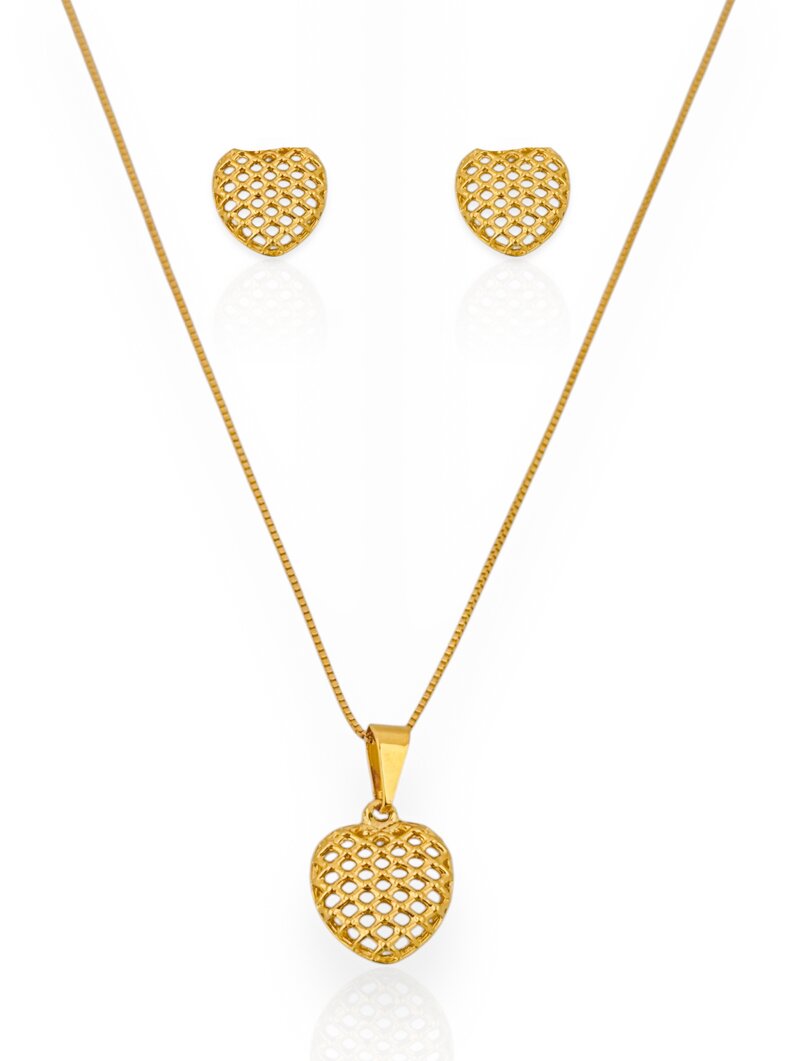 3. Conjunto Colar e Brinco Folheado a Ouro 18k Coração Trançado