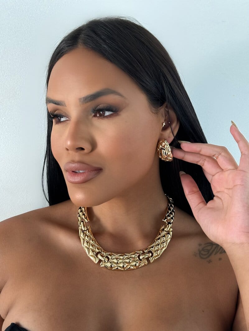 3. Conjunto Colar e Brinco Folheado a Ouro 18K e Prata Aro Detalhe Texturizado