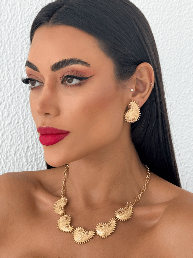 Conjunto Colar e Brinco folheado a ouro 18k e Prata Aro Gota Toda Trabalhada M