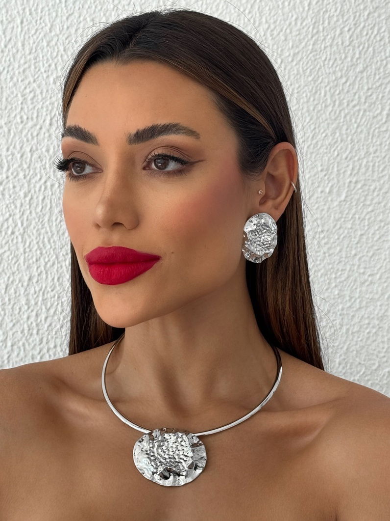 Conjunto Colar e Brinco Folheado a Ouro 18k e Prata Aro Martelado