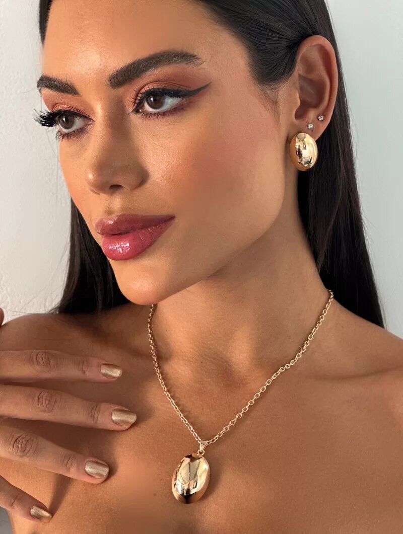 3. Conjunto Colar e Brinco Folheado a Ouro 18k e Prata Botton Oval Liso