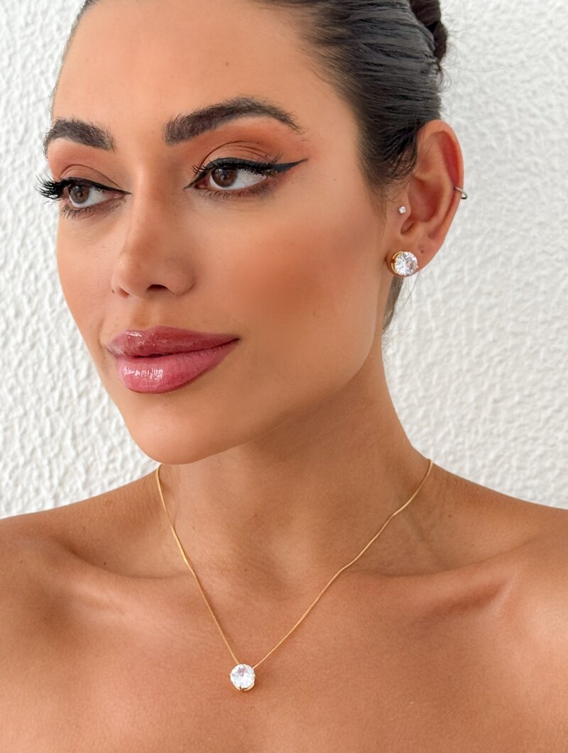 3. Conjunto Colar e Brinco Folheado a Ouro 18k e Prata Circulo de Zircônia Cristal