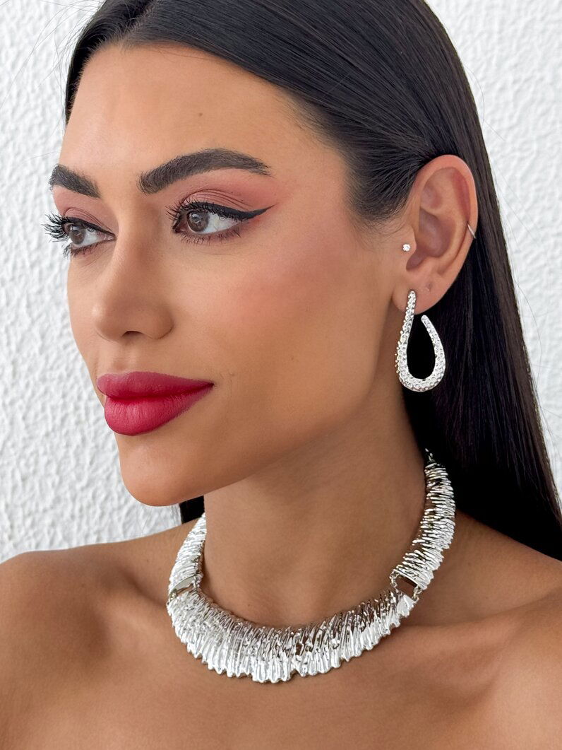 Conjunto Colar e Brinco Folheado a Ouro 18k e Prata Escovado