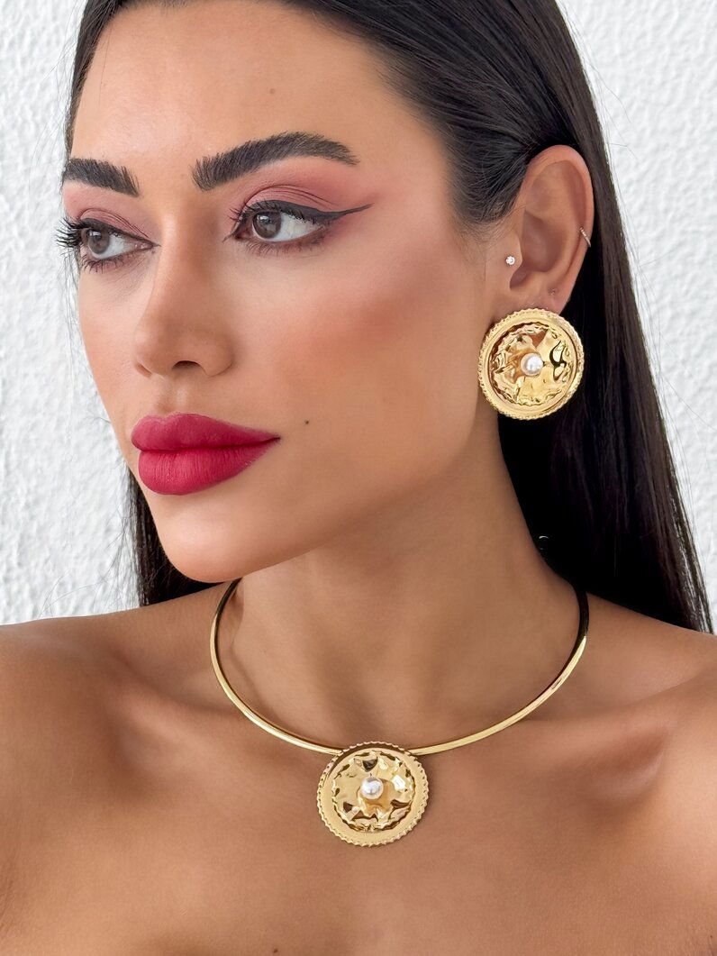 3. Conjunto Colar e Brinco Folheado a Ouro 18k e Prata Martelado