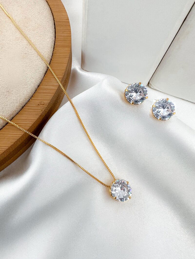 3. Conjunto Colar e Brinco Folheado a Ouro 18k e Prata Ponto de Luz