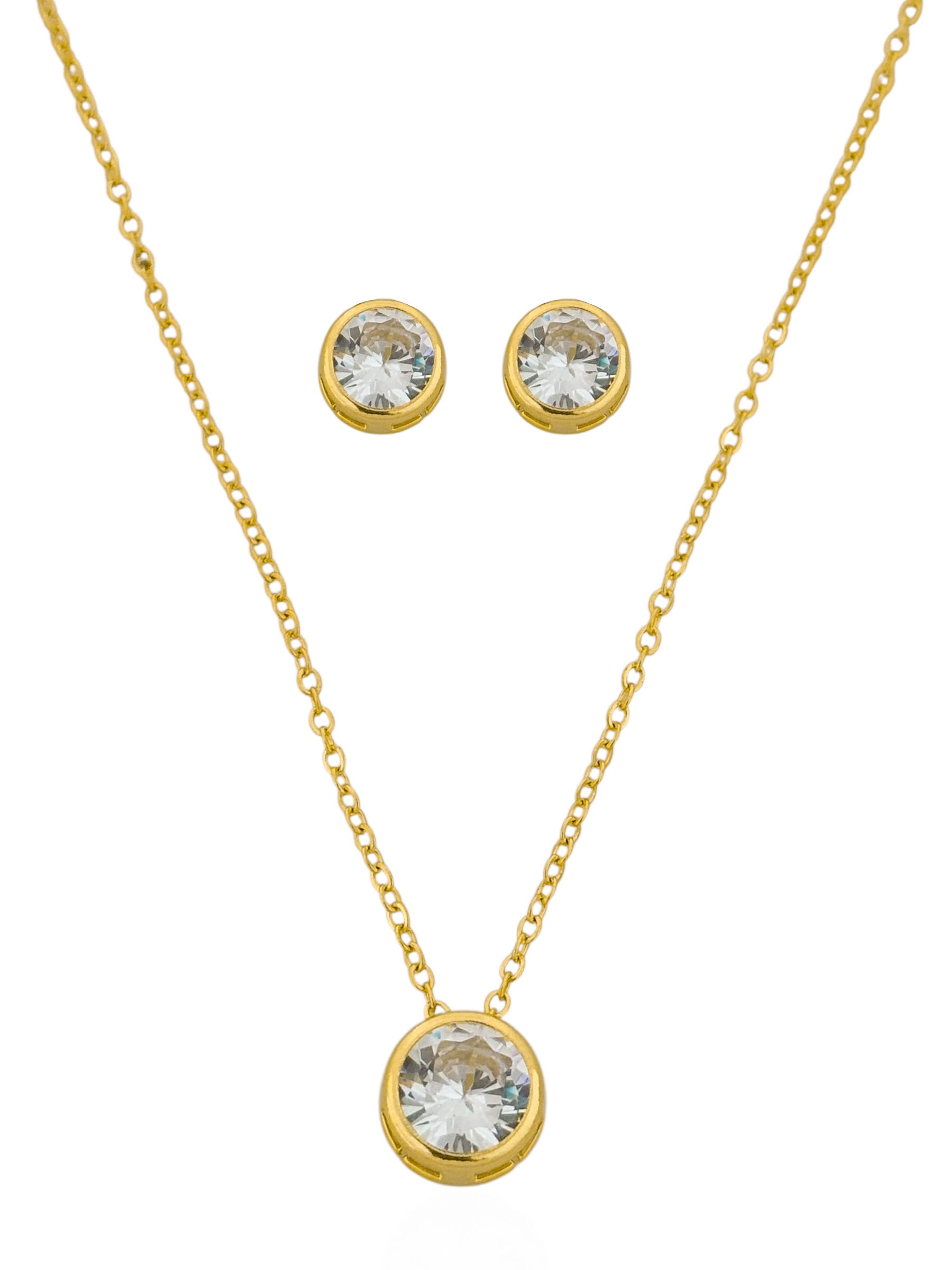 2. Conjunto Colar e Brinco Folheado a Ouro 18k e Prata Ponto de luz Encapsulada