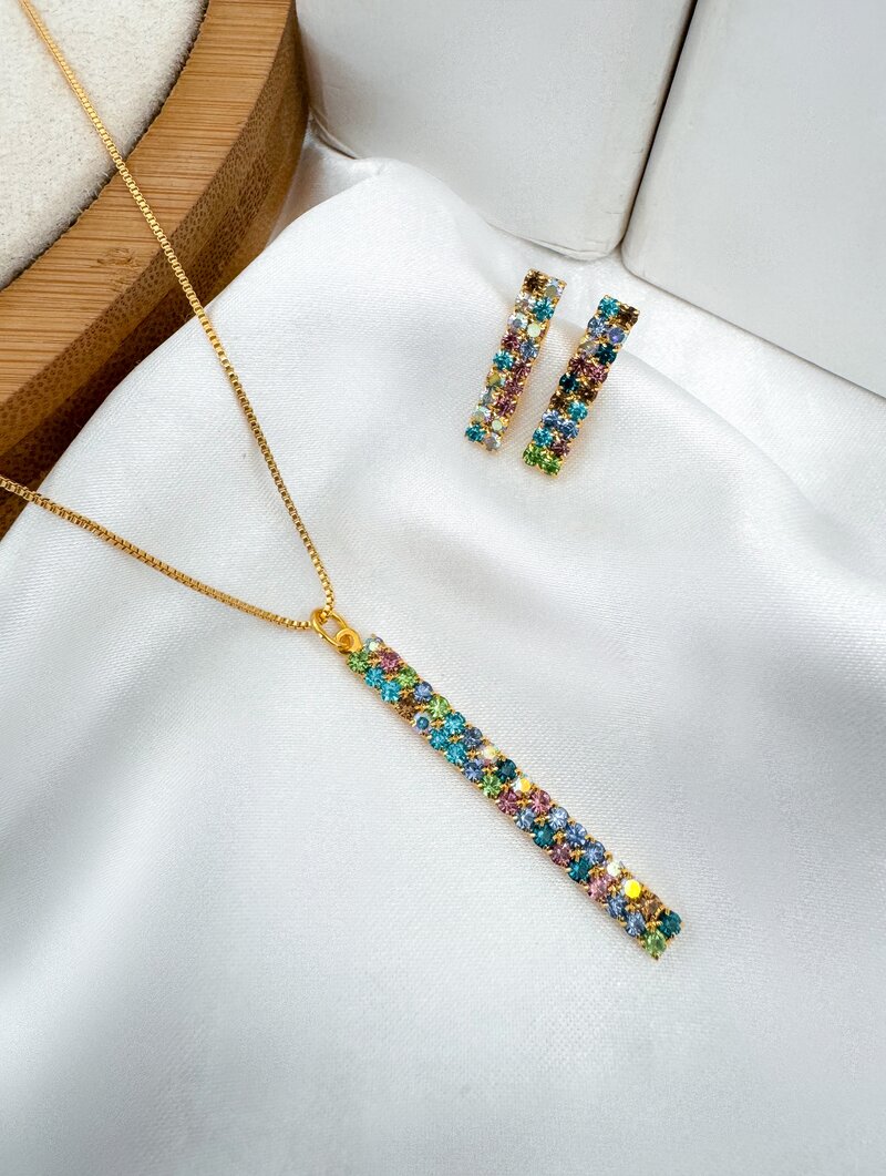 3. Conjunto Colar e Brinco Folheado a Ouro 18k Filete Cravejado