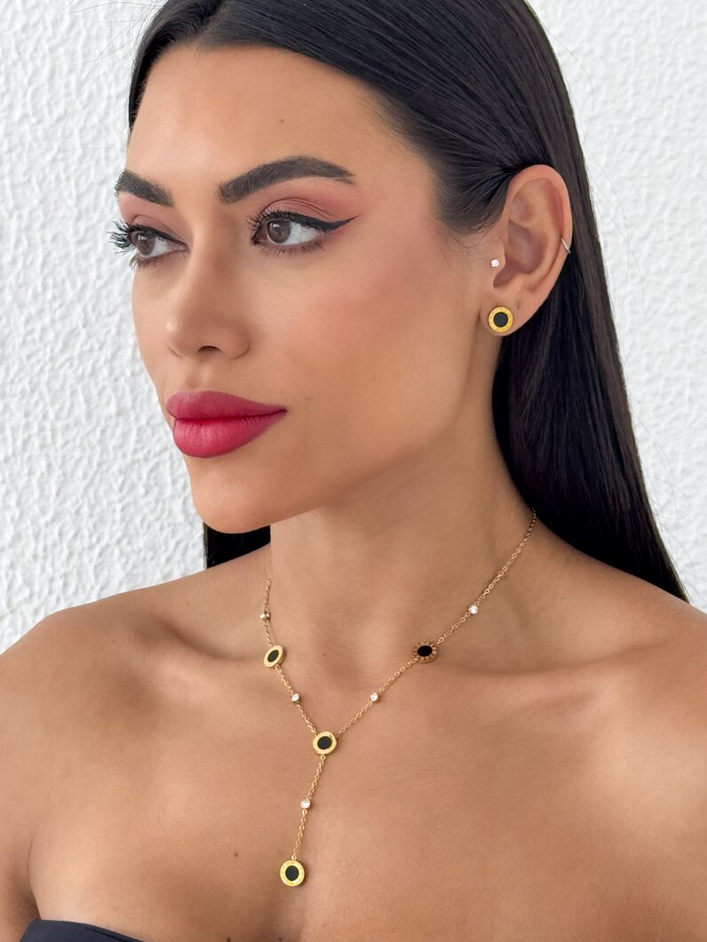 3. Conjunto Colar e Brinco Folheado a Ouro 18k Inspiração a Grandes Marcas Redondo
