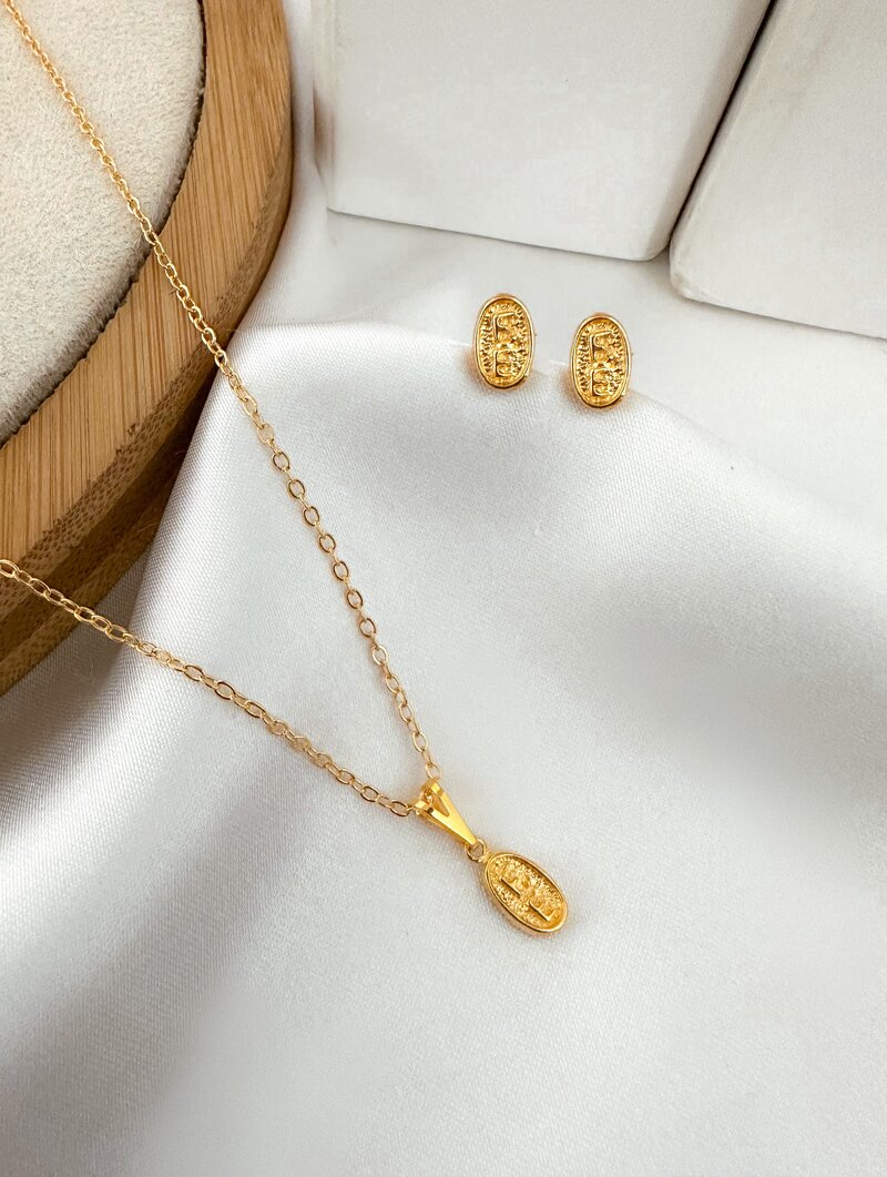 3. Conjunto Colar e Brinco Folheado a Ouro 18k Pingente Fé