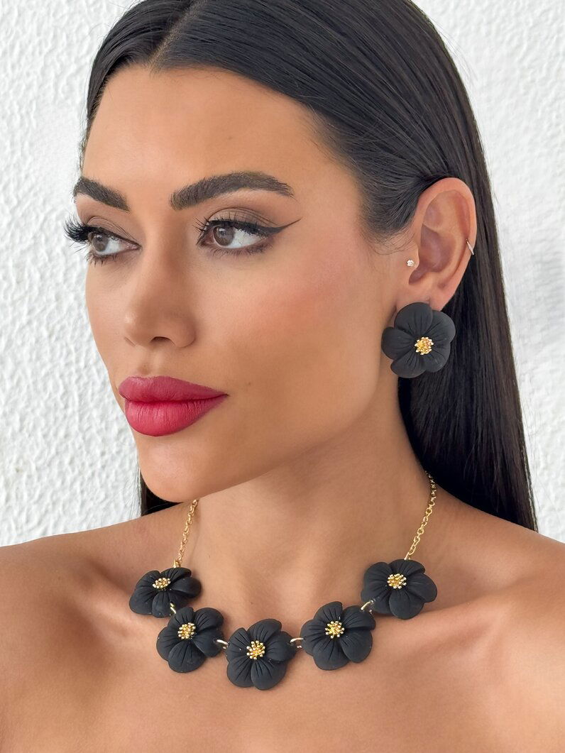 3. Conjunto de Colar e Brinco Folheado a Ouro 18k Flor de Resina
