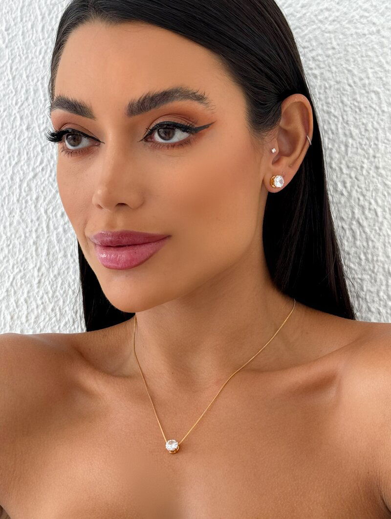 3. Conjunto Folheado a Ouro 18K Colar e Brinco Ponto de Luz P