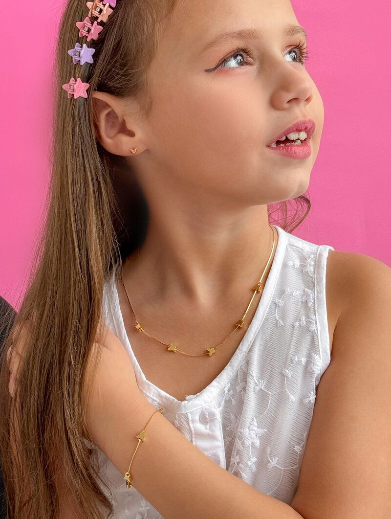 3. Conjunto Infantil Colar, Brinco e Pulseira Folheado a ouro 18k com Borboletas Lisas