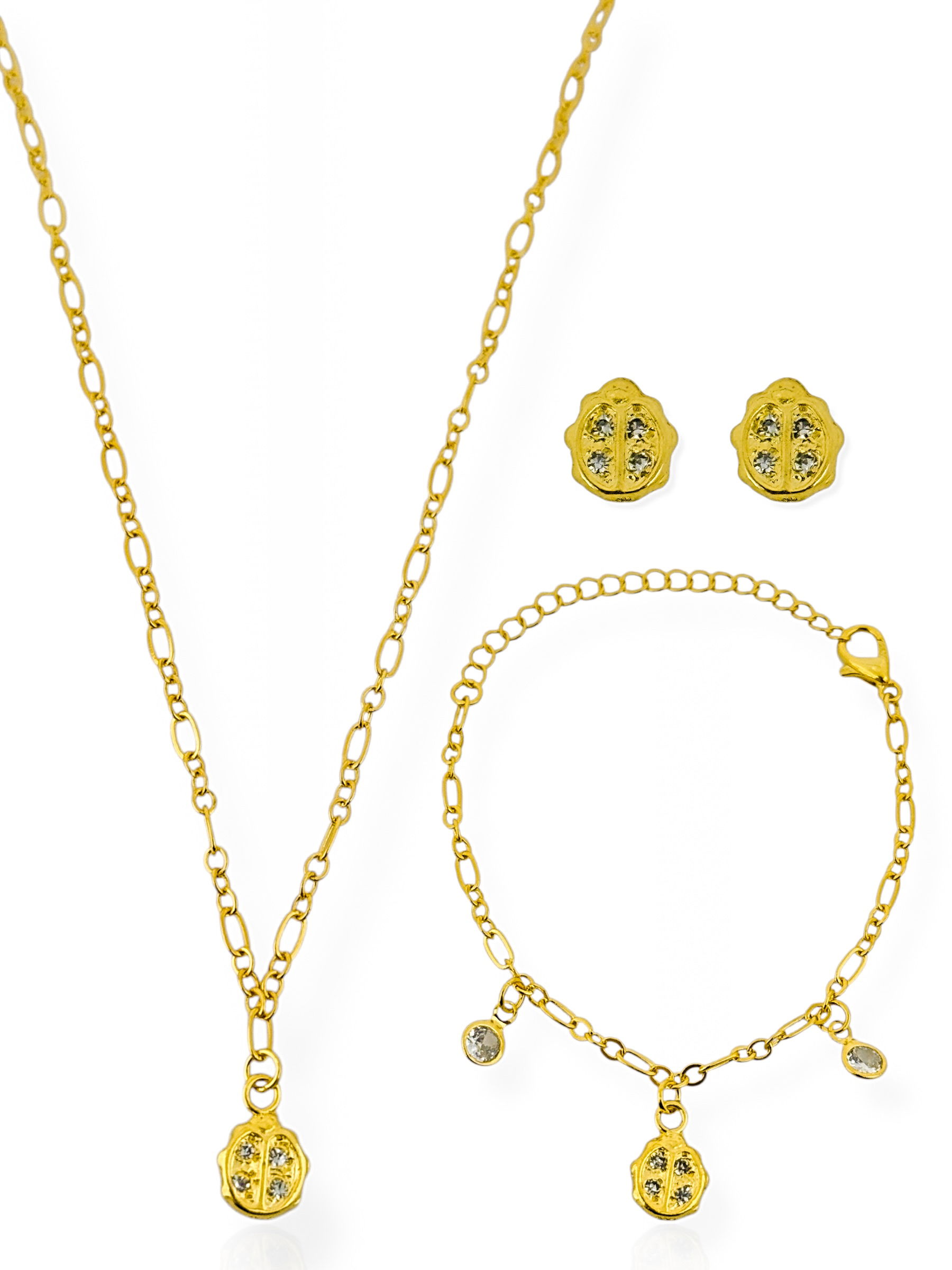 Conjunto Infantil Colar, Brinco e Pulseira Folheado a Ouro 18k e Prata Joaninha