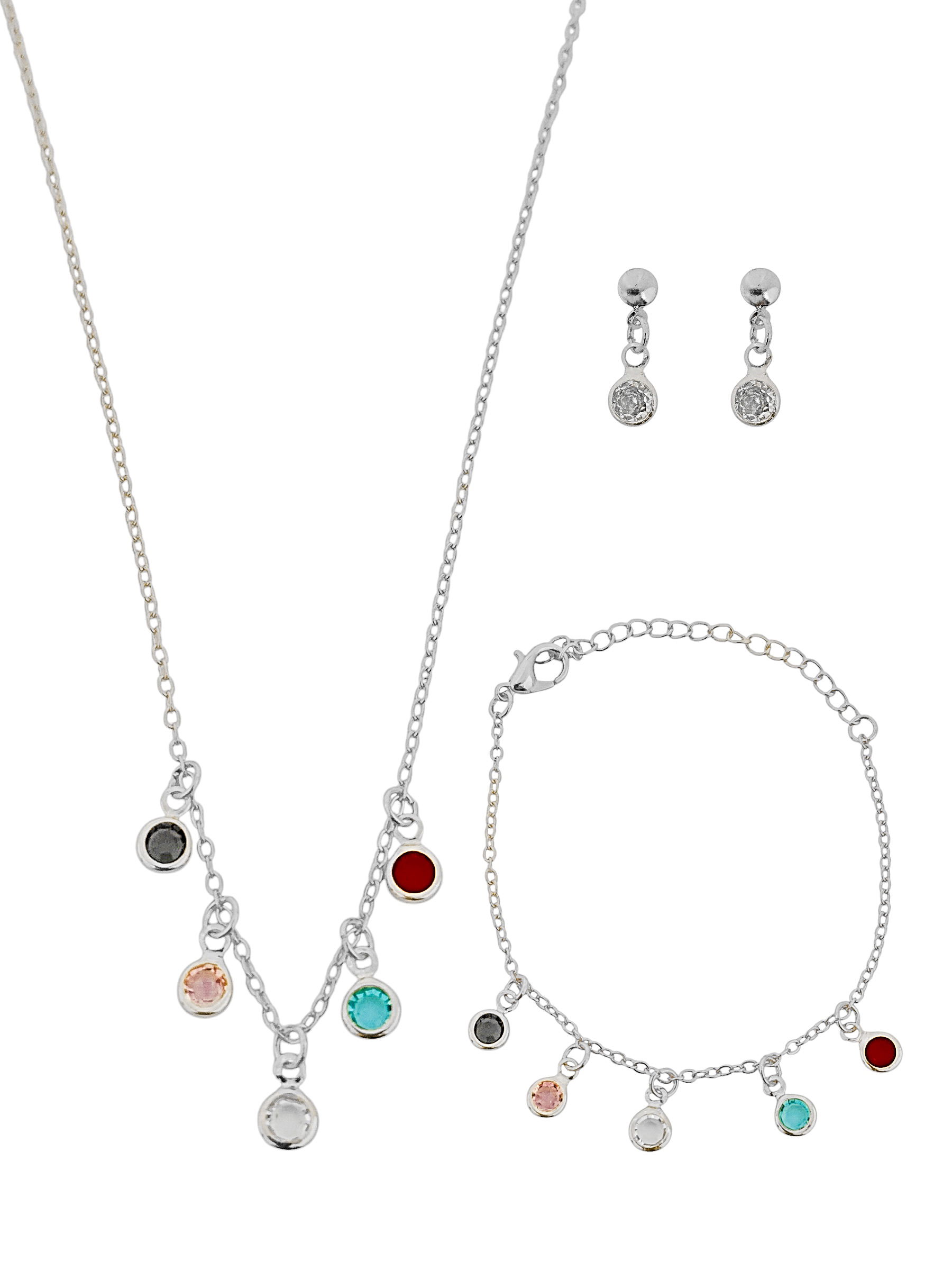 Conjunto Infantil Colar, Brinco e Pulseira Folheado a Ouro 18k e Prata Zirconias Coloridas
