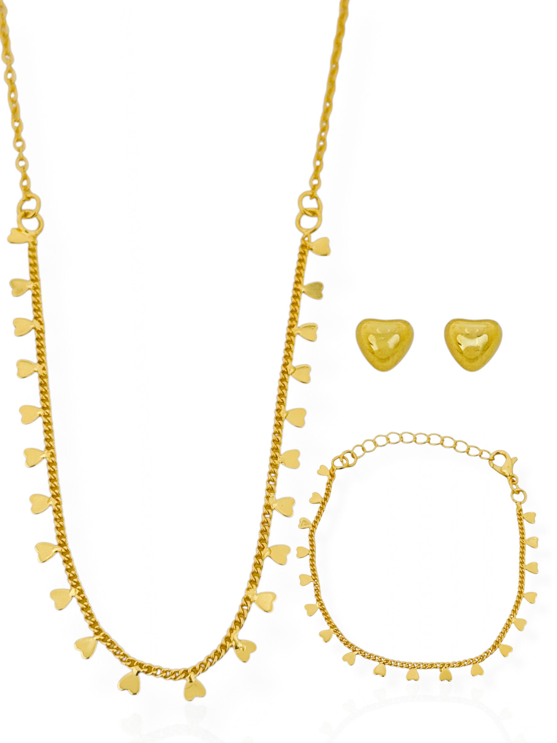 Conjunto Infantil Colar, Brinco e Pulseira Folheado a Ouro 18k Mini Corações