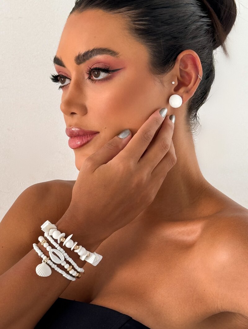 3. Conjunto Pulseiras e Brinco Miçangas com Concha