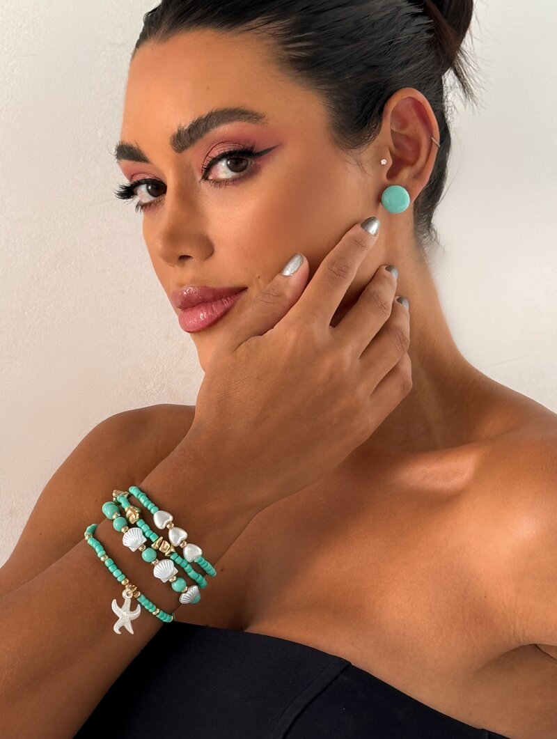3. Conjunto Pulseiras e Brinco Miçangas com Corações, Conchas e Estrela