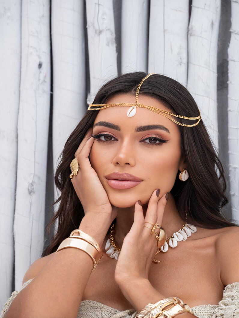 3. Head Band Folheado a Ouro 18k Correntaria com Búzio