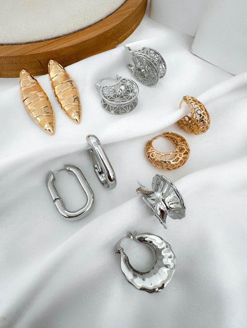 2. Kit Cinco Brincos Folheados a Ouro 18k e Prata Betina