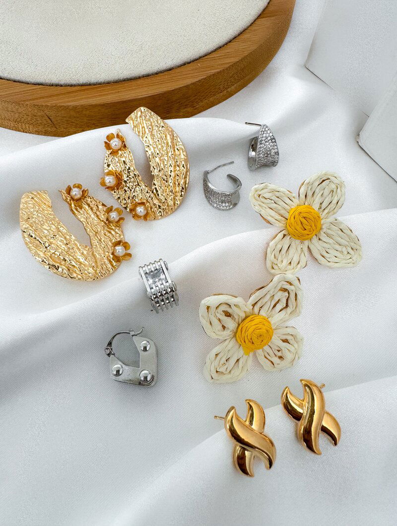 2. Kit Cinco Brincos Folheados a Ouro 18k e Prata Charlote