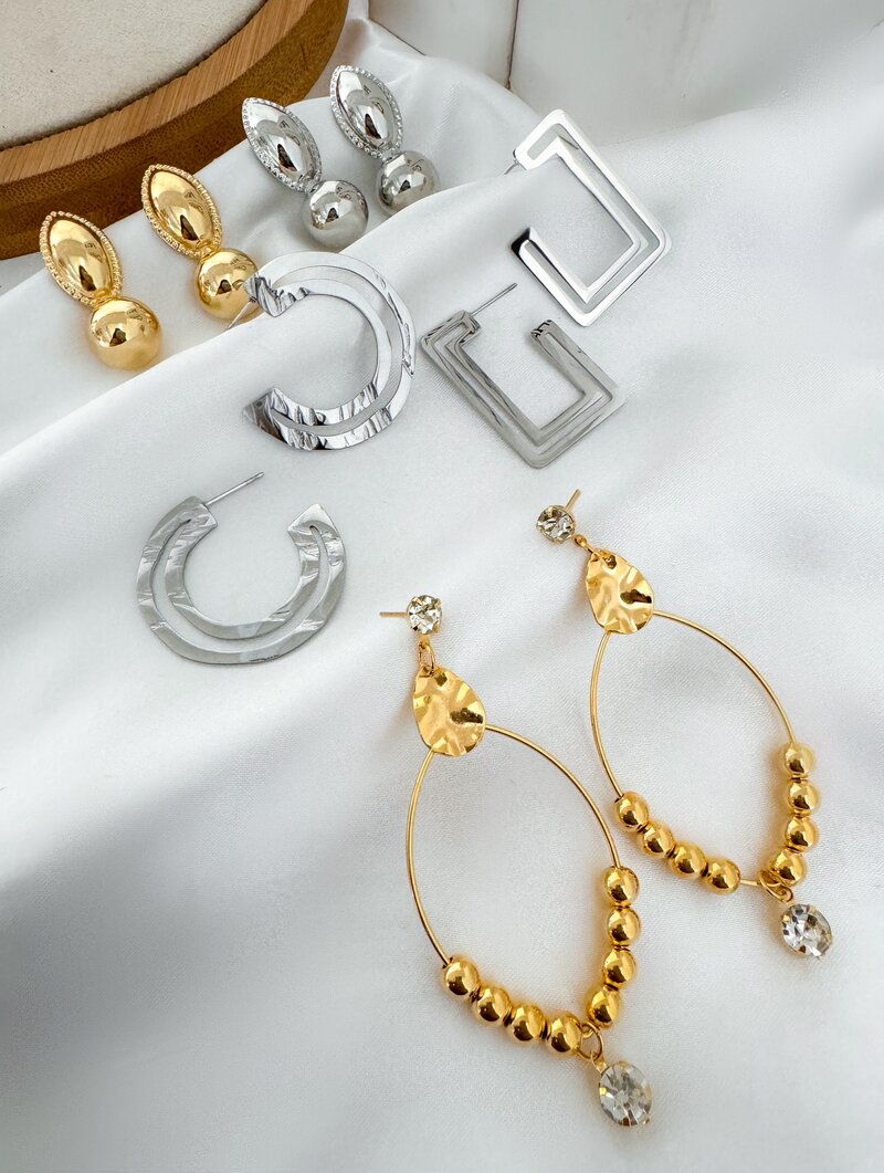 2. Kit Cinco Brincos Folheados a Ouro 18k e Prata Hanna