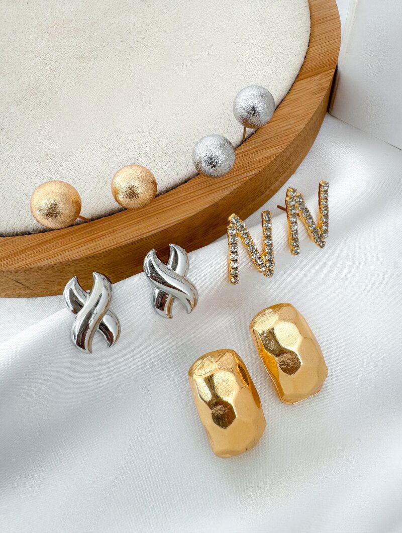 2. Kit Cinco Brincos Folheados a Ouro 18k e Prata Mariana
