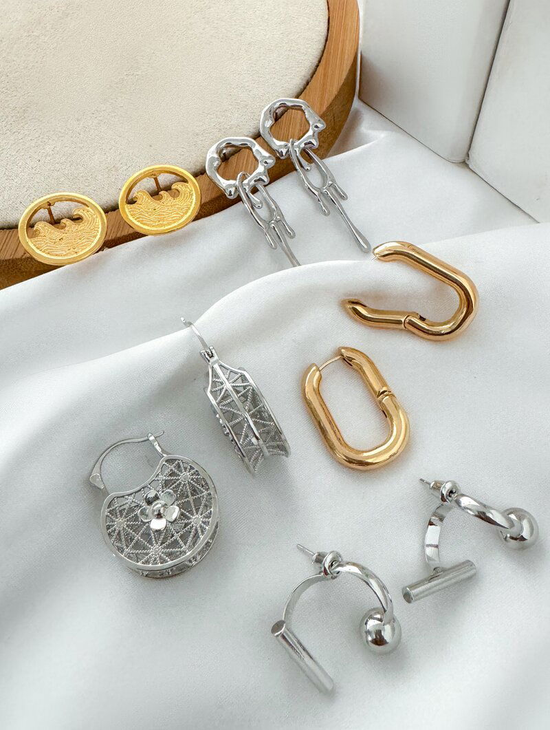 2. Kit Cinco Brincos Folheados a Ouro 18k e Prata Pietra