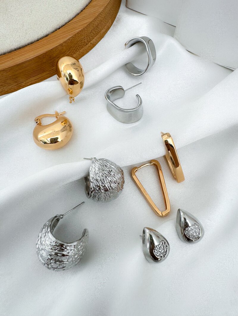 2. Kit Cinco Brincos Folheados a Ouro 18k e Prata Sarah