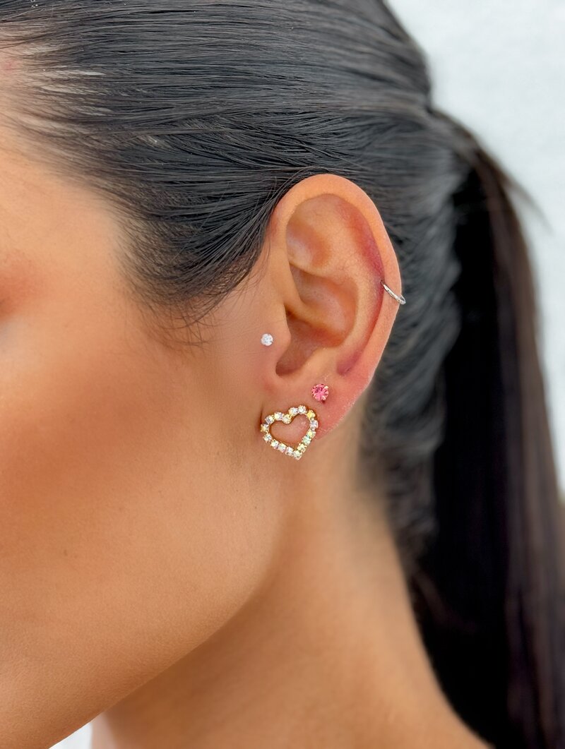 3. Kit Dois Brincos Folheados a Ouro 18k Coração e Ponto de Luz