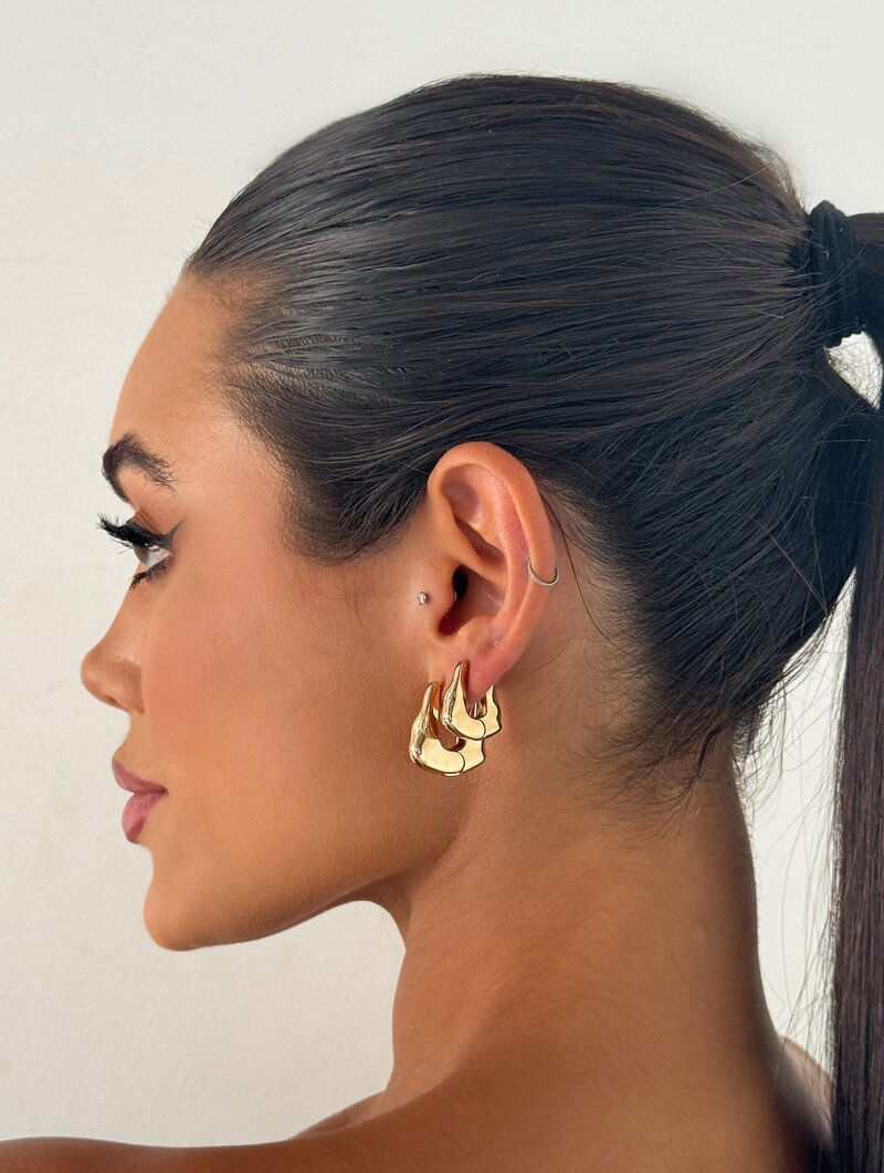 3. Kit Dois Brincos Folheados a Ouro 18k e Prata Argolas Marteladas