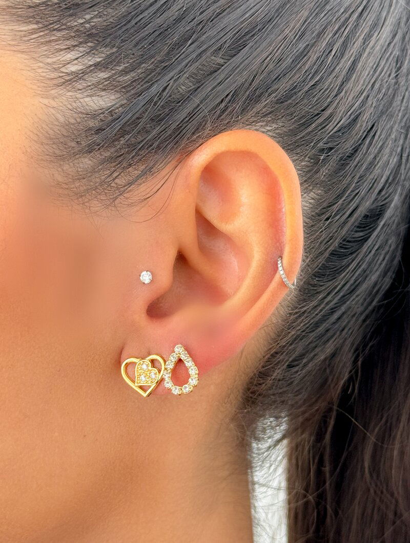 3. Kit Dois Brincos Folheados a Ouro 18k Gota Cravejada e Coração