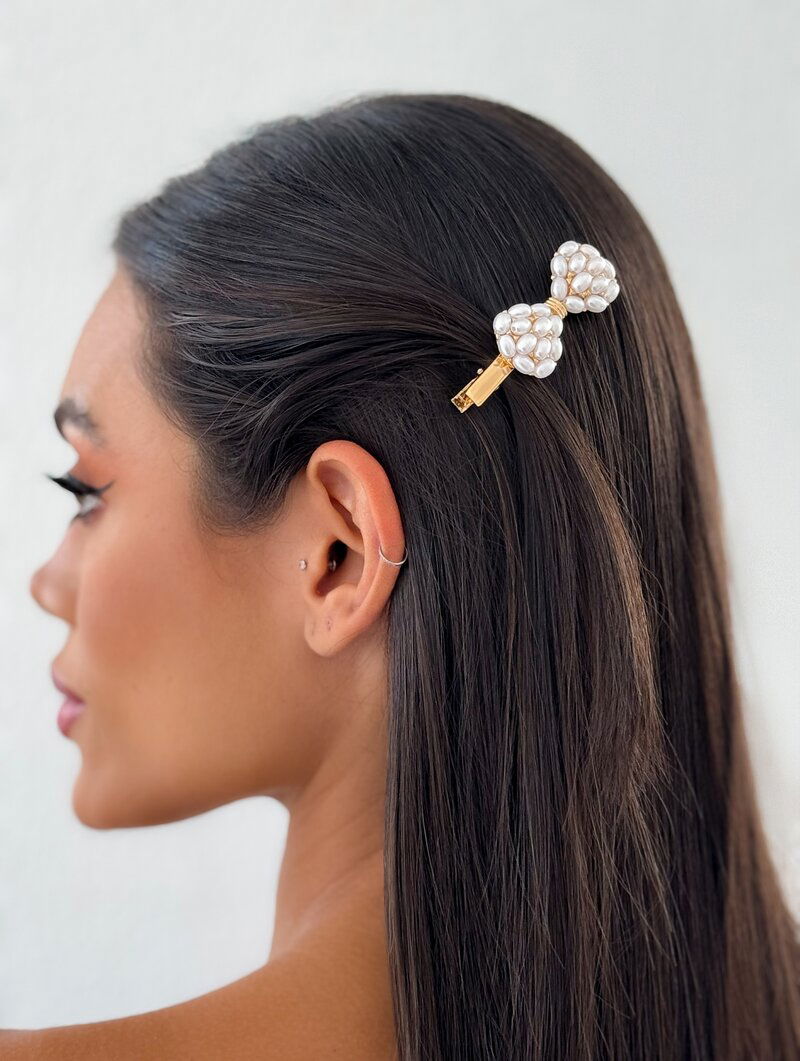 3. Kit Duas Presilhas Folheadas a Ouro 18k Laço com Pérolas