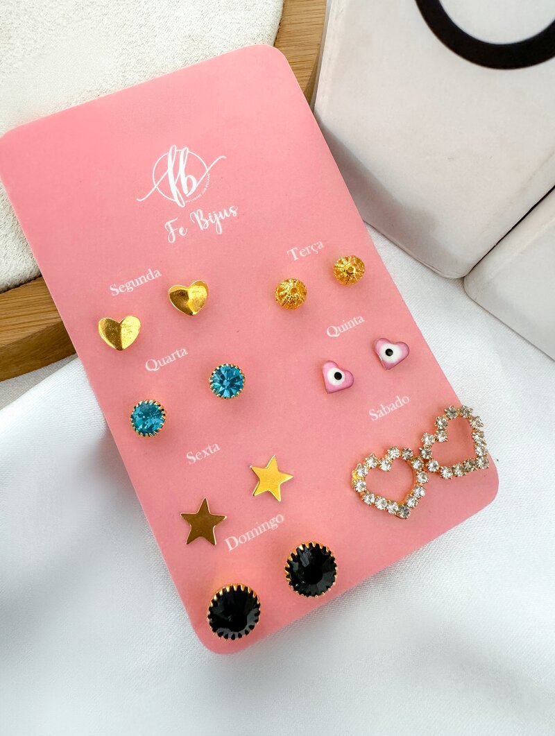 3. Kit Semaninha Folheada a Ouro 18k Corações, Estrela e Olho Grego