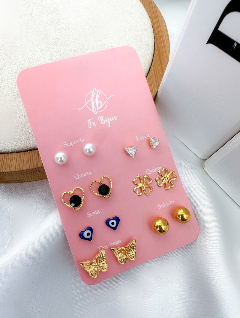 3. Kit Semaninha Folheada a Ouro 18k Pérola, Corações e Borboleta