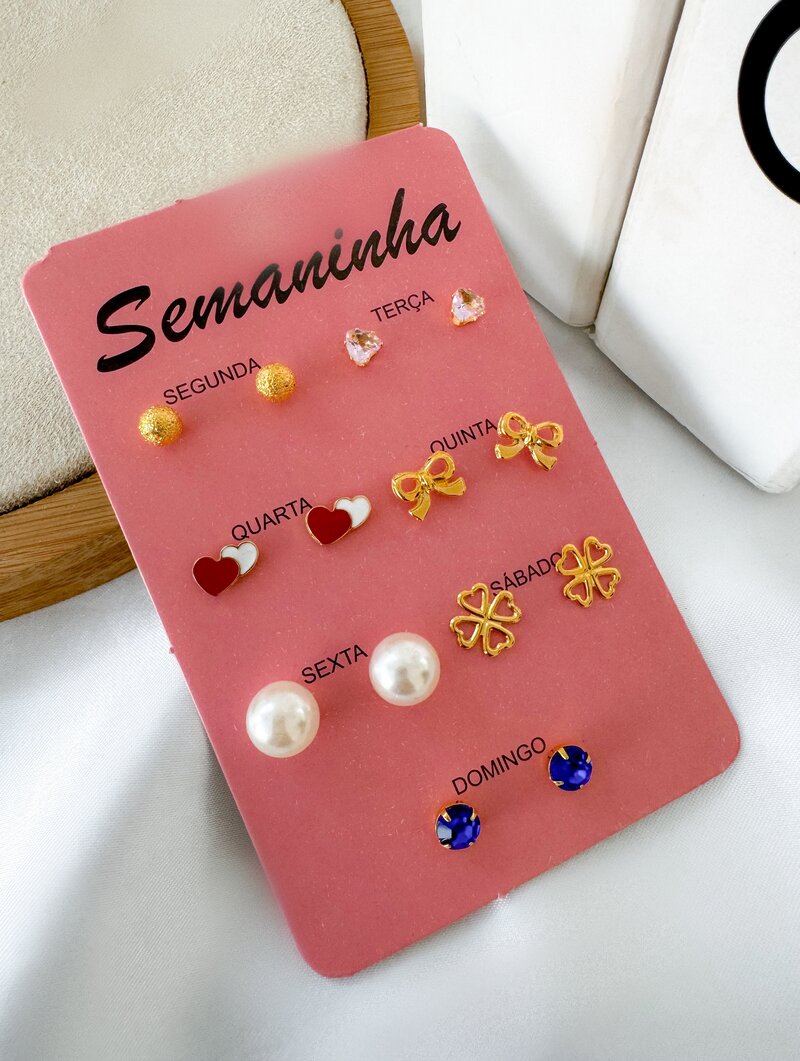 3. Kit Semaninha Folheada a Ouro 18k Zircônias, Trevo, Pérola e Coração