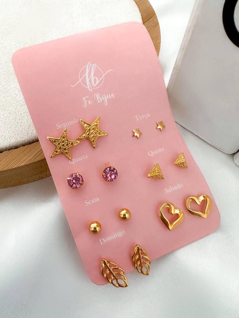 3. Kit Semaninha Folheado a Ouro 18k Coração, Estrela e Foiha
