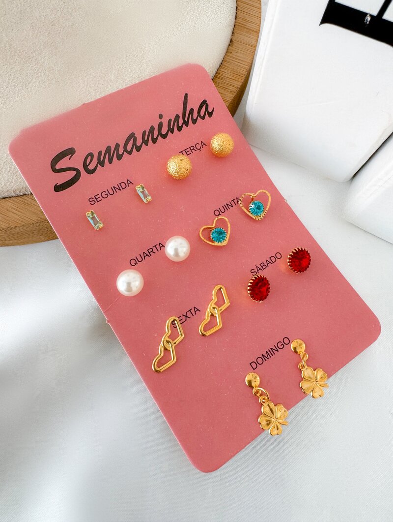 3. Kit Semaninha Folheado a Ouro 18k Corações, Trevo e Esferas
