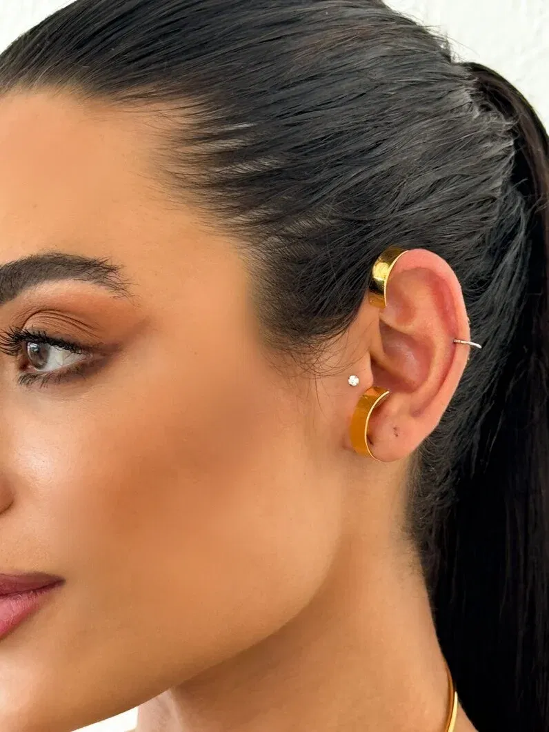 Piercing Ear Cuff Folheado a Ouro 18k e Prata Aro Blogger