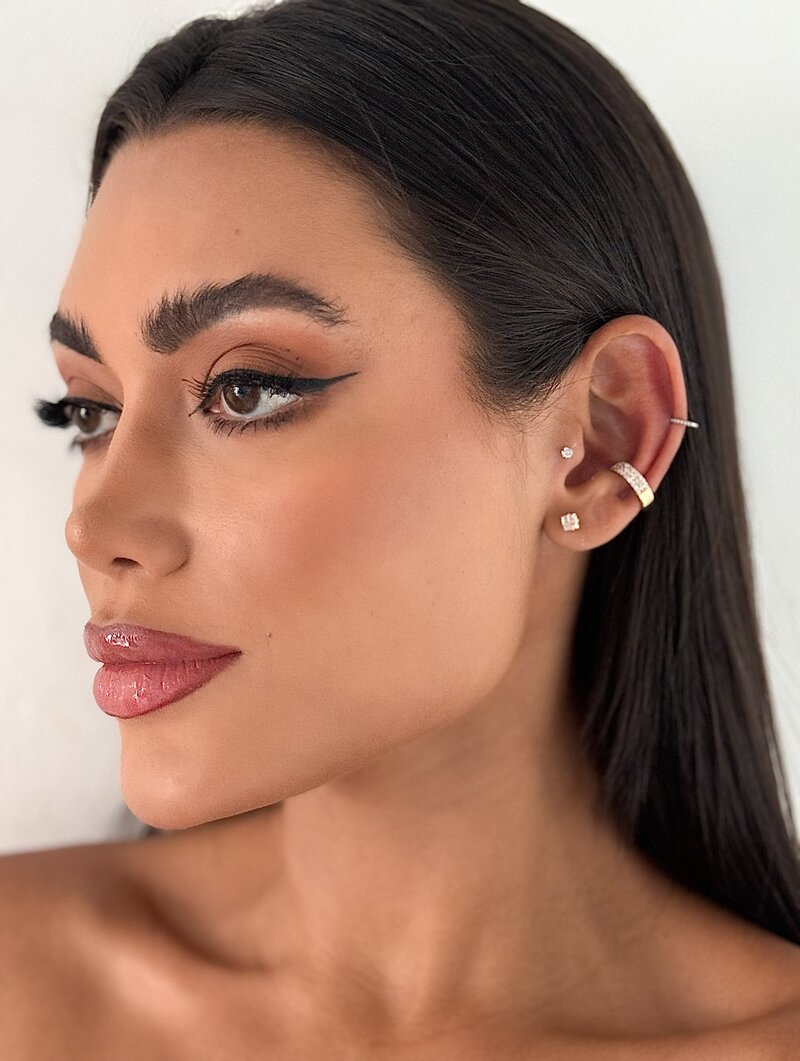 3. Piercing Fake Folheado a Ouro 18k e Prata Cravejado com Micro Zircônias