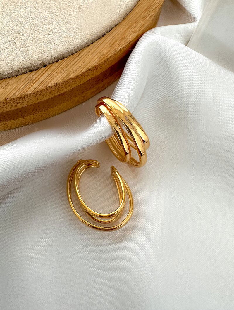 3. Piercing Fake Folheado a Ouro 18k e Prata Ear Cuff Fios