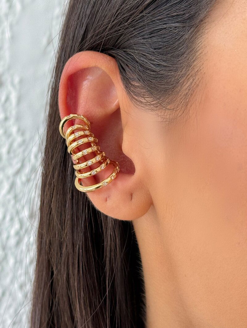 Piercing Fake Folheado a Ouro 18k e Prata Ear Cuff Oito Fios