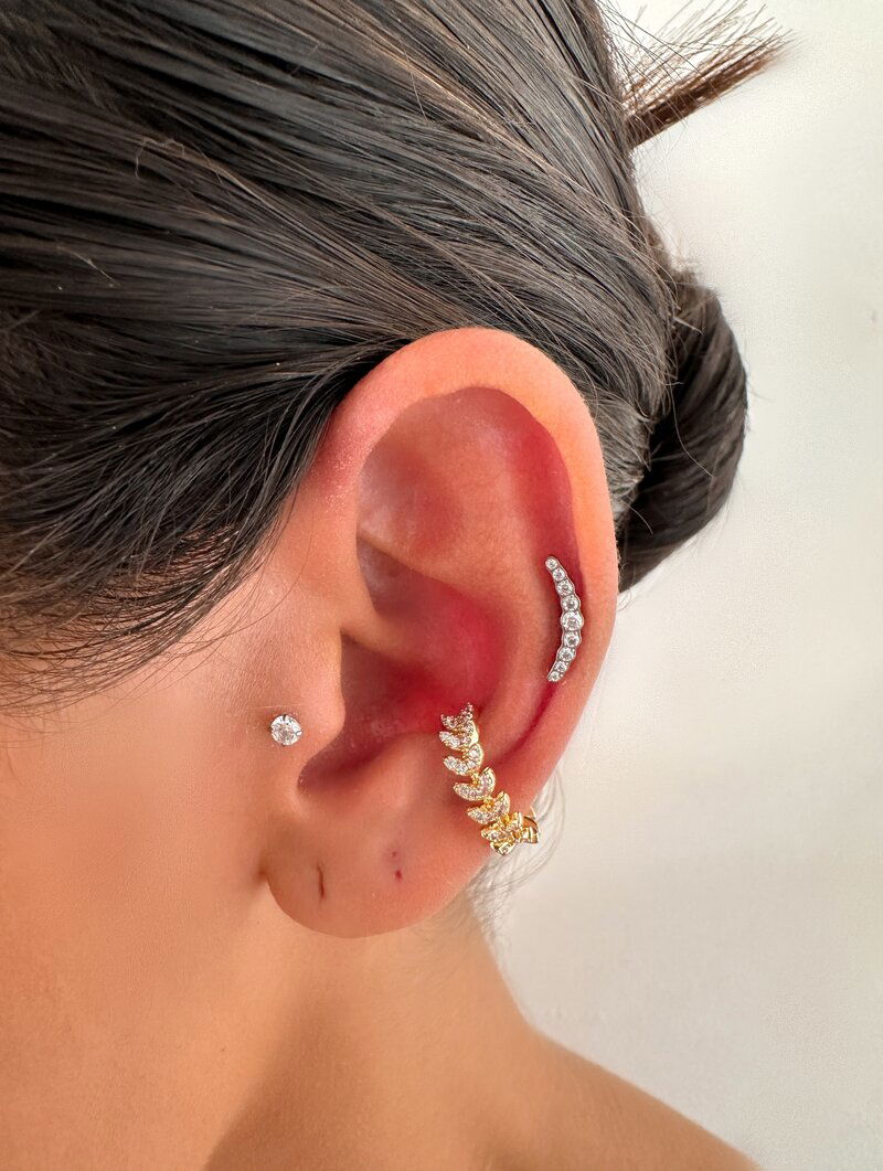 Piercing Fake Folheado a Ouro 18k e Prata Escamas Cravejadas