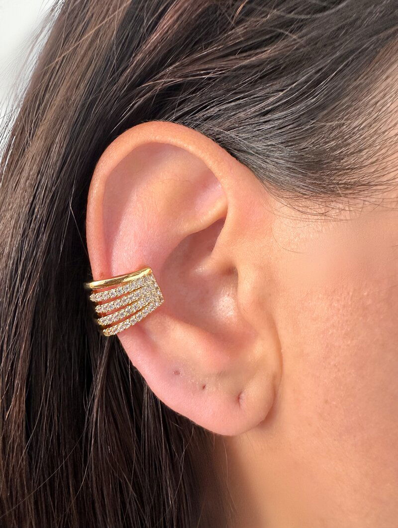 Piercing Fake Folheado a Ouro 18k e Prata Fios Vazados Cravejados