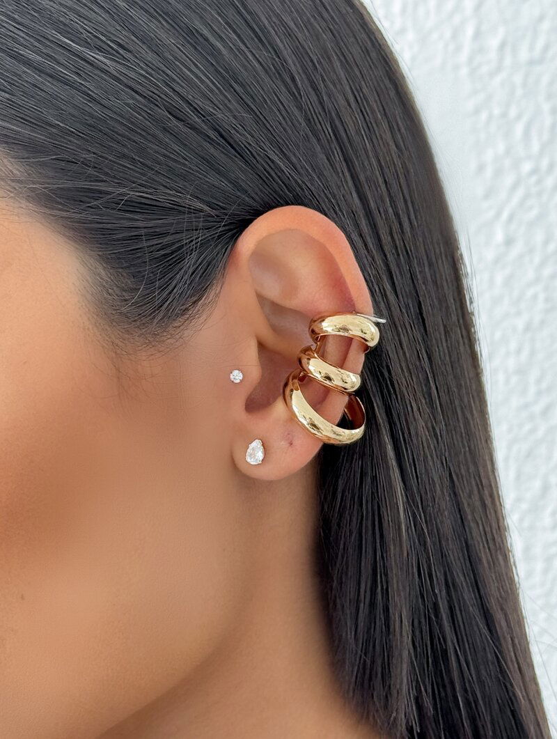 Piercing Fake Folheado a Ouro 18k e Prata Maxi Três Fios
