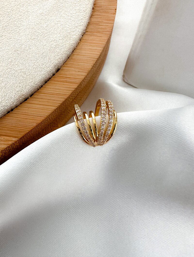 Piercing Fake Folheado a Ouro 18k e Prata Seis Fios com Datalhe Cravejado