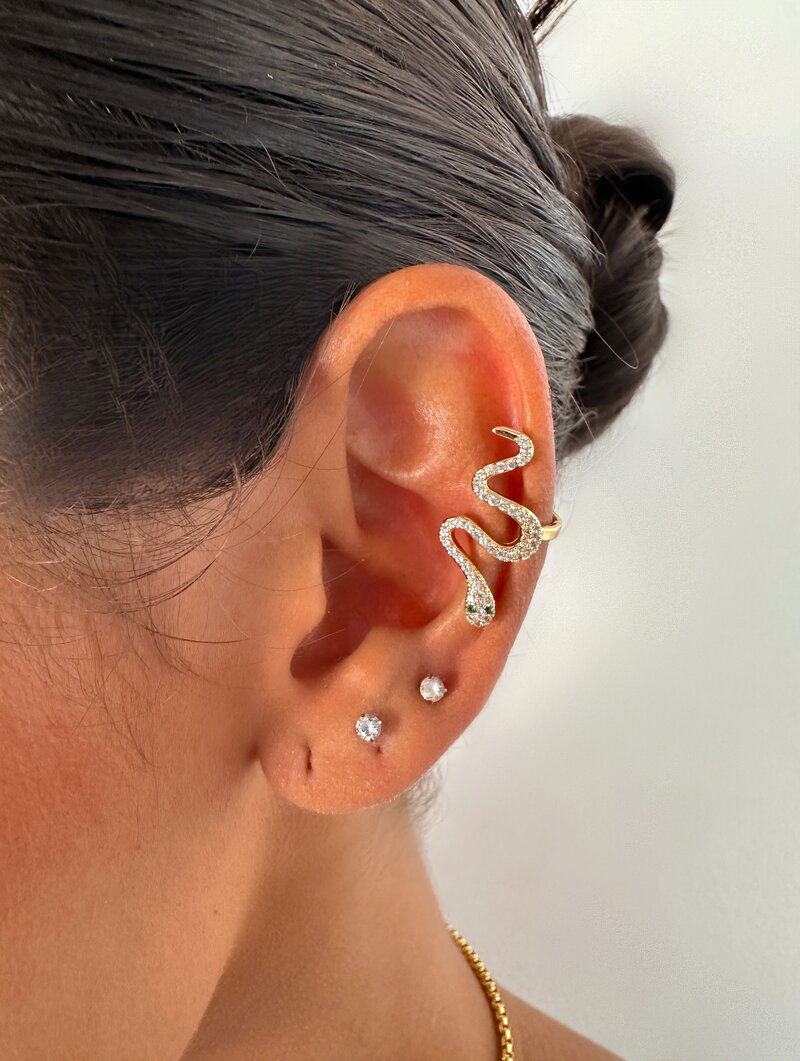 Piercing Fake Folheado a Ouro 18k e Prata Serpente Cravejada